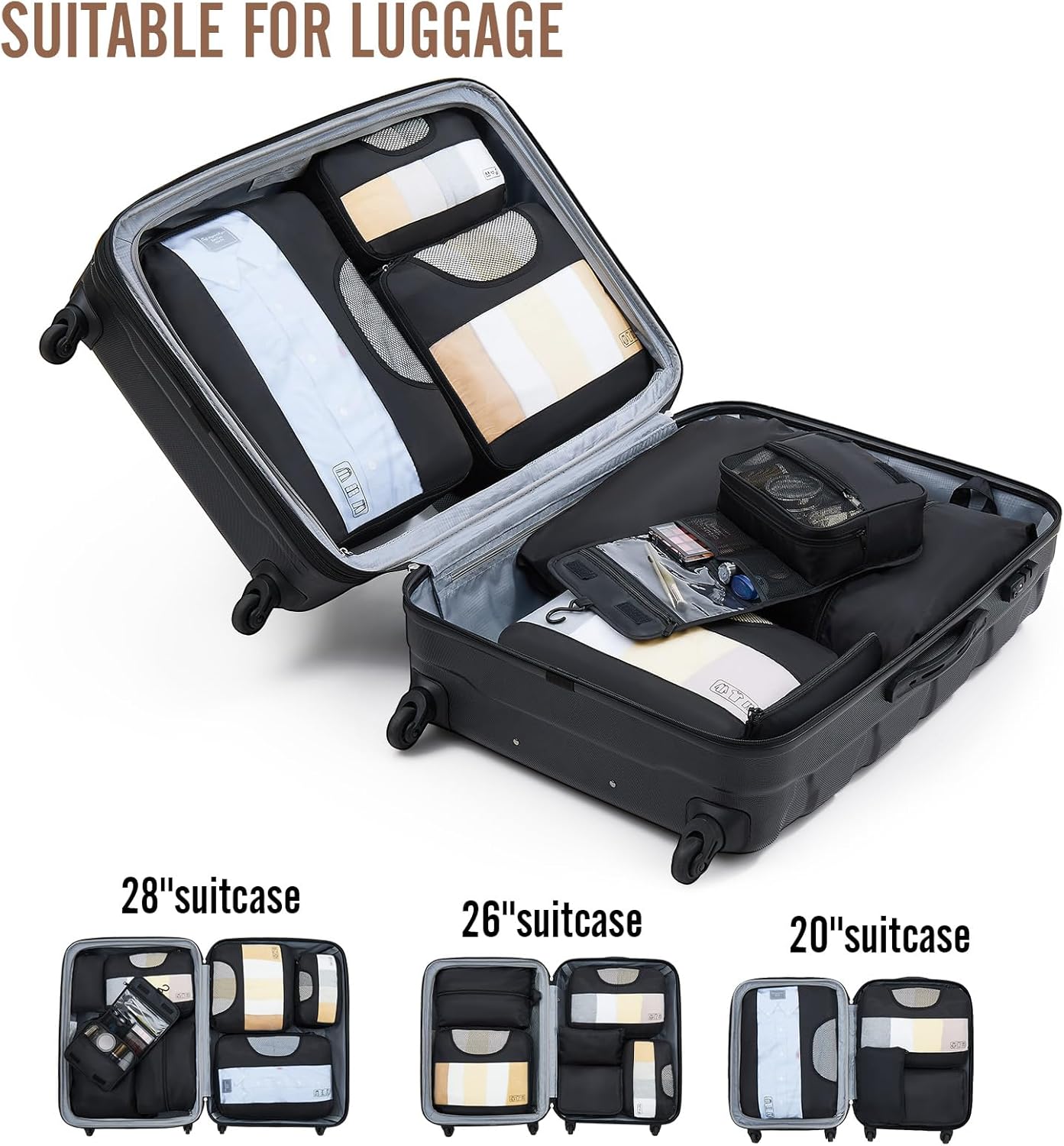 Constructed from durable and lightweight material, these packing cubes are designed to withstand the rigors of travel. The breathable mesh panels allow for ventilation and easy identification of contents, while the sturdy zippers ensure secure closure. The sleek black color adds a touch of sophistication to your luggage.